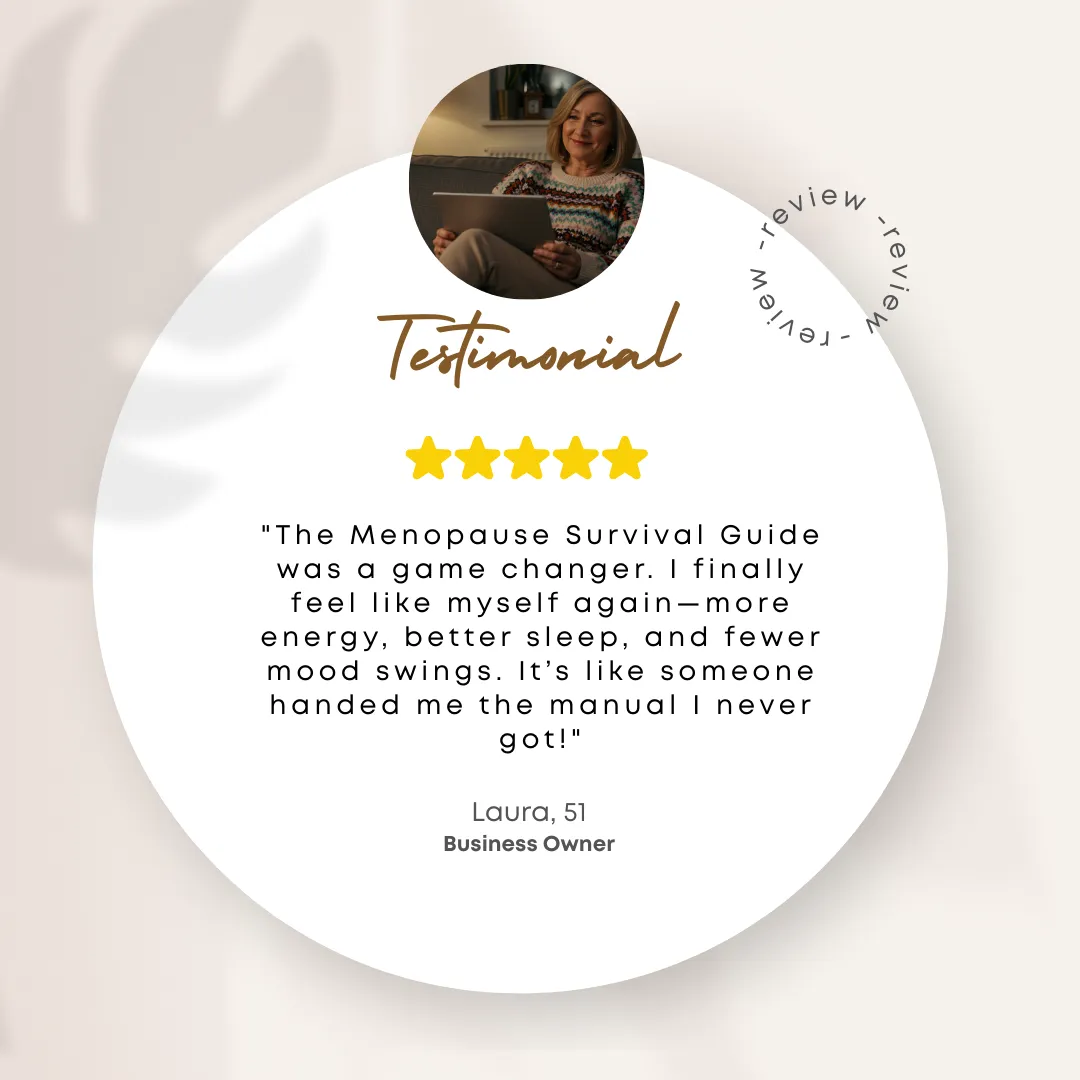Disclaimer: The information provided on this website and in The Menopause Survival Guide is for informational and educational purposes only and is not medical advice. The content is based on publicly available research, general wellness principles, and personal experiences. It is not a substitute for professional medical advice, diagnosis, or treatment. Always consult with a qualified healthcare provider before making any changes to your health, diet, or treatment plan.